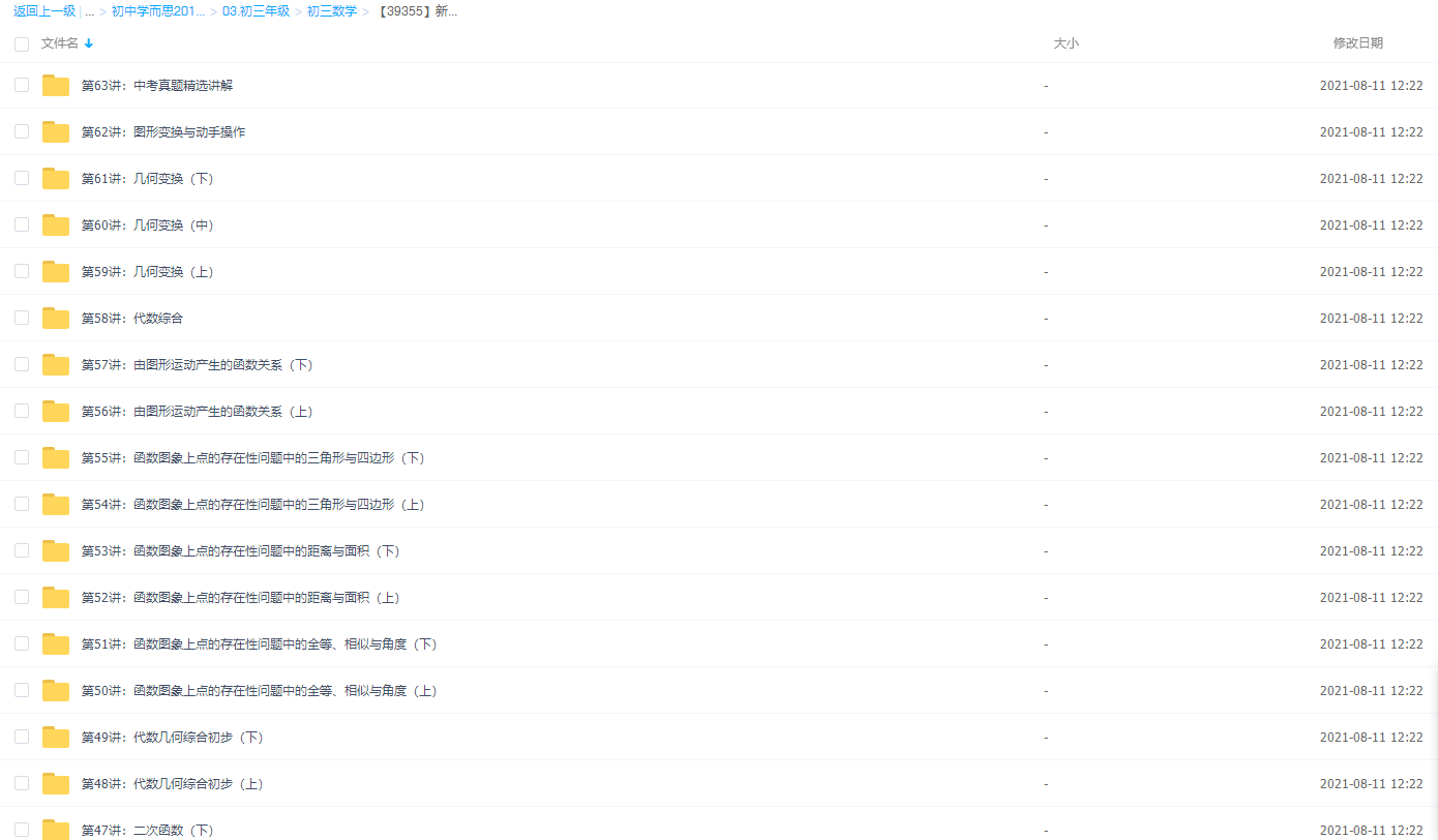 此课件来自学而思网校,【39355】新初三数学年卡尖子班(沪科版)【朱韬-63讲】,包含视频课程和讲义资料 。此课件的主要内容包括: 全国中考真题精选讲解、图形变换与动手操作(必考点,易错点)、几何变换(中考必考难点难题挑战)、二次函数的基本解析式与图像变换等视频