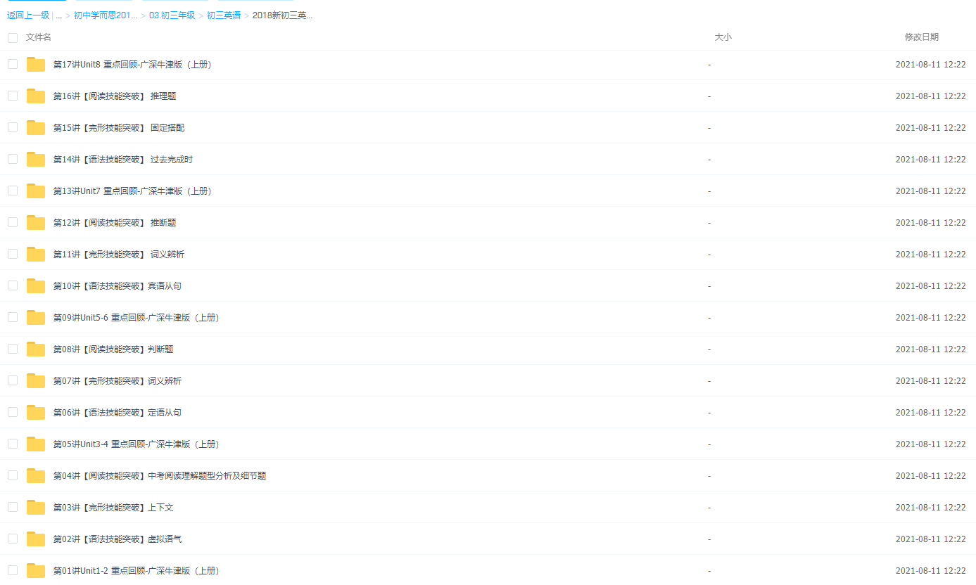 此课件来自学而思网校,2018新初三英语年卡尖子班(广深牛津版)【刘飞飞】,包含视频课程和讲义资料 。此课件的主要知识点包括:【词法高频考点】形容词与副词、【完型技能突破】真题及词汇精讲、考前冲刺之模拟中考、中考阅读理解题型分析及细节题等视频。