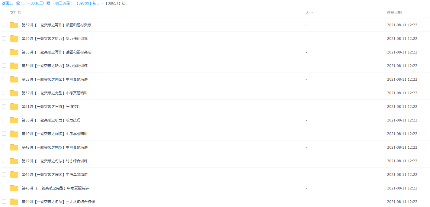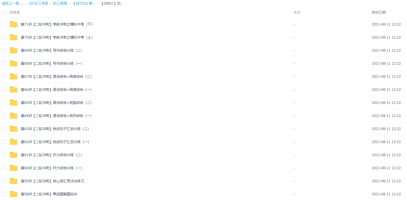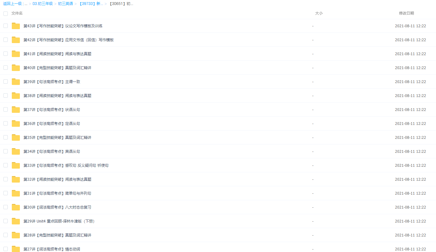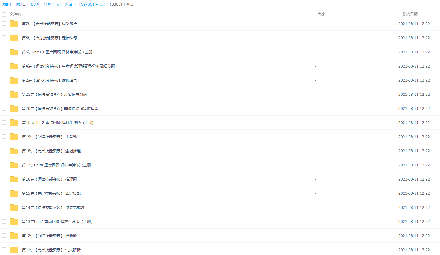 目录: 秋上(暑假班): 01.【语言学习】语法(形副三级1)+阅读理解+词汇精...