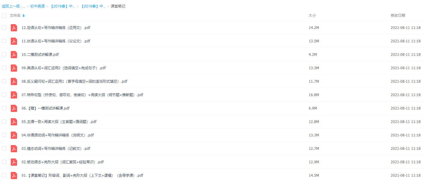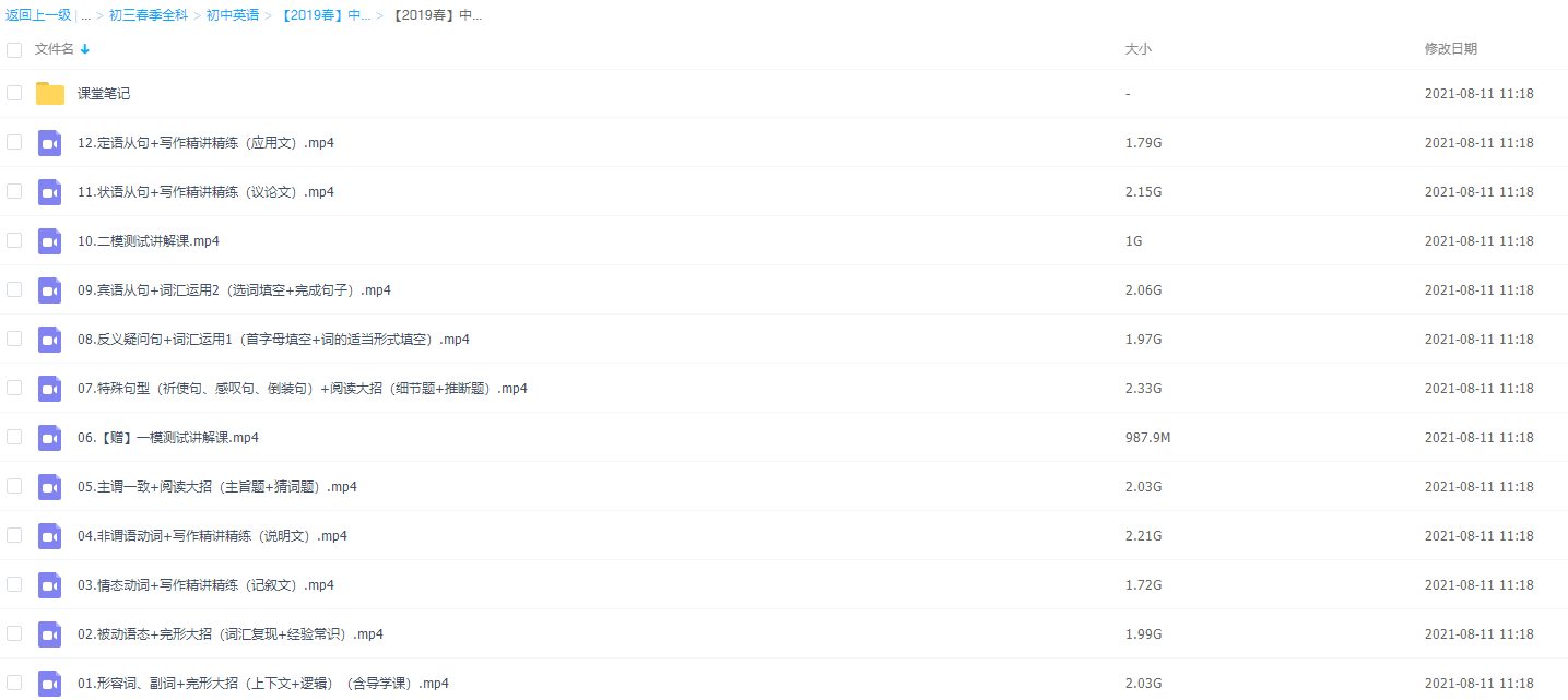 此课件来自作业帮网校,王凯皎作业帮中考英语二轮提升班初中视频课程。主讲王凯皎老师熟谙中考英语命题规律,连续押中18年及19年中考真题。116口诀梳理语法难题,题型大招助力完型阅读。此课件主要知识点包括:形容词、副词+完形大招(上下文+逻辑) 、被动语态+完形大招(词汇 复现+经验常识)、情态动词+写作精讲精练(记叙文)、非谓语动词+写作精讲精练(说明文)、主调一致+阅读大招(主旨题+猜词题)等视频。
