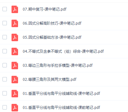 此课件来自作业帮网校,刘岩初二数学2021年春季尖端班(北师大)课程。此课件主要知识点包括:垂直平分线与角平分线辅助线、等腰三角形及其两大模型、等边三角形与手拉手模型、不等式及含参数不等式(组)综合、因式分解基础方法、期中复习、分式运算与化简求值技巧、分式方程、平行四边形综合