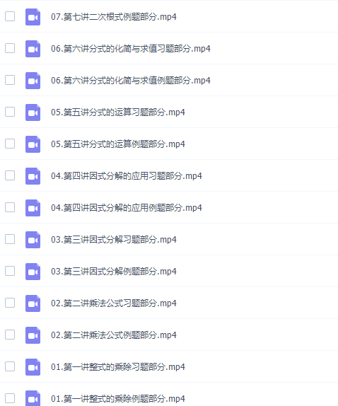 此课件来自杨琦初二数学八年级数学新思维刷题课课程,此课件主要知识点包括:整式的乘除、乘法公式、因式分解、因式分解习题、因式分解的应用习题、分式的运算、分式的化简与求值、二次根式、一次函数、一次函数与方程、图形与坐标习题、全等三角形、等腰三角形、轴对称、直角三角形、平行四边形、矩形菱形、正方形、关于中点的联想、图形的折叠。