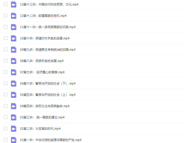 此课件来自学科网中国古代史专题课程高清视频,此课件主要知识点包括:中华文明的起源与国家的产生、大变革的时代、统一国家的建立、政权分立与民族融合、繁荣与开放的社会、经济重心的南移、民族关系的发展、明清君主专制统治的加强、明清对外关系的发展、统一多民族国家的巩固、封建国家的危机、中国古代科技思想、文化。。