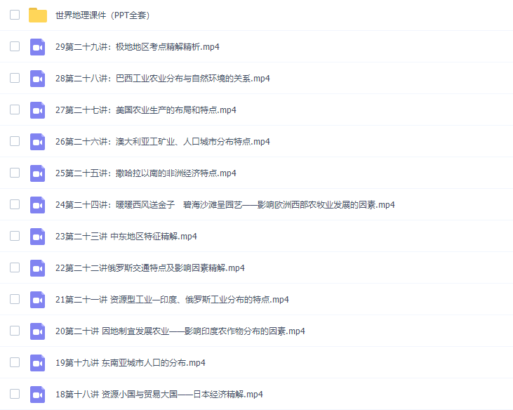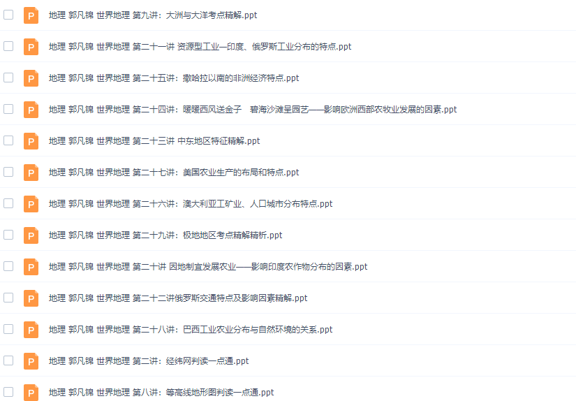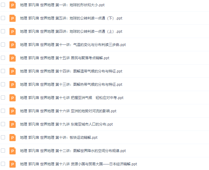 此课件来自​学科网初中世界地理郭凡锦高清视频课程,此课件主要知识点包括:地球的形状和大小、经纬网判读、地球的公转、地图上的方向、等高线地形图、大洲与大洋考点、板块运动、气温的变化与分布、世界降水的空间分布、热带气候的分布与特征、温带气候的分布与特征、 居民与聚落考点等等视频课程。。。