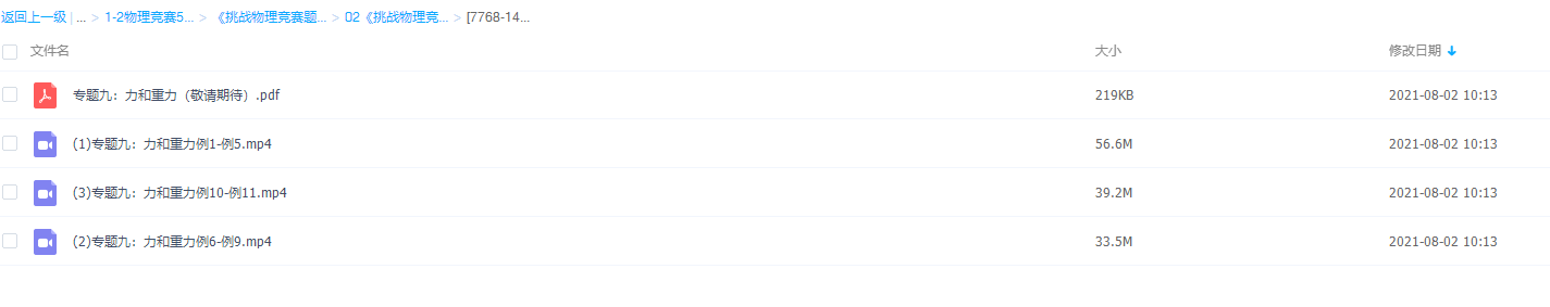 初中物理知识点大全《挑战物理竞赛题》初二下学期力和重力课程讲解的非常详细透彻,不管是预习还是复习,都杠杠的!