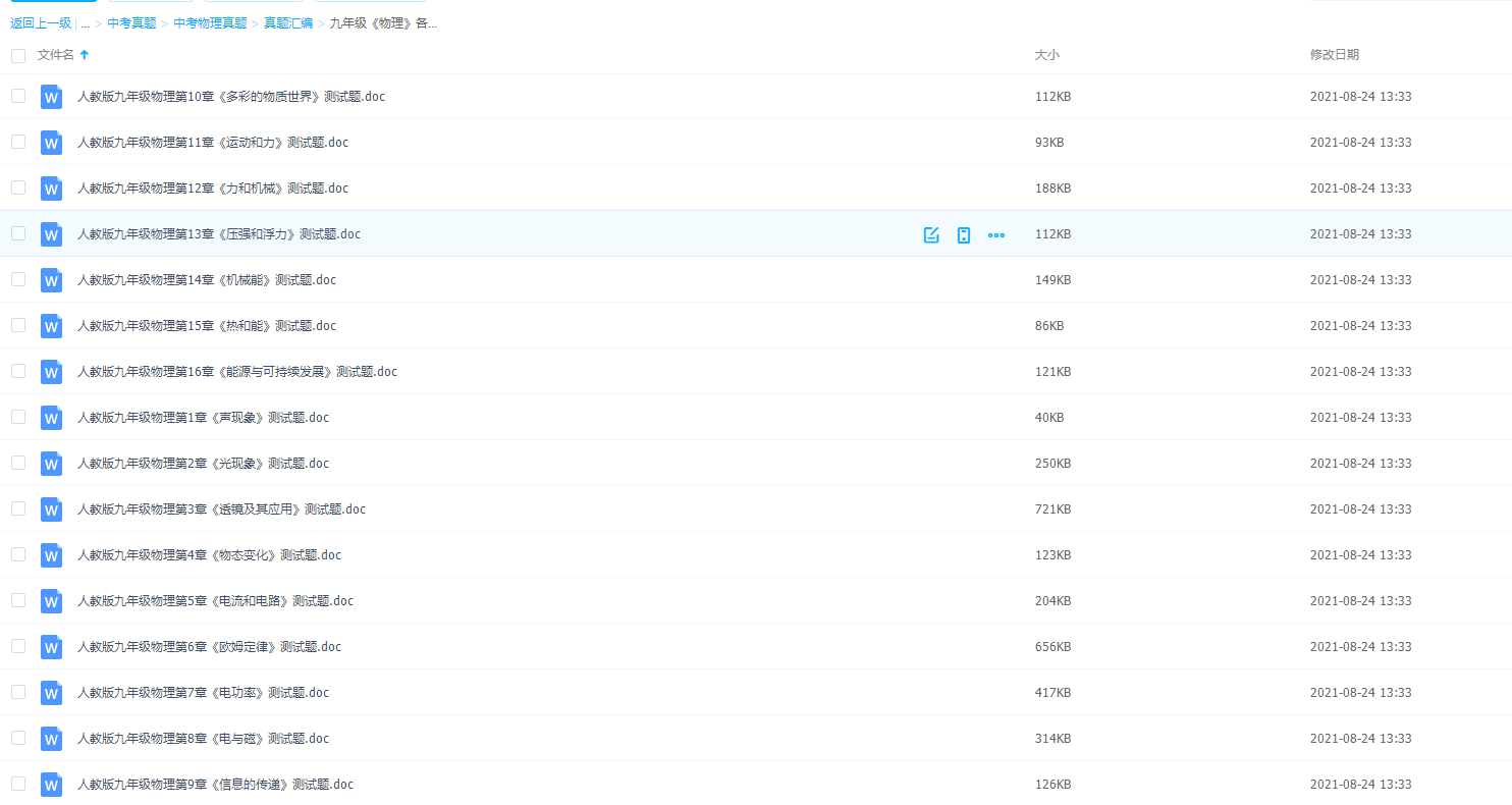 物理在初中开始接触,你可能有点不适应,但是多做题还是可以的!九年级《物理》各章单元测试卷1到16章专题答案大全~