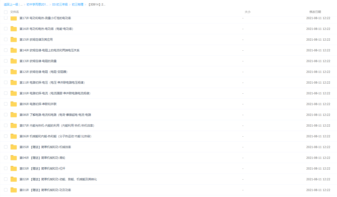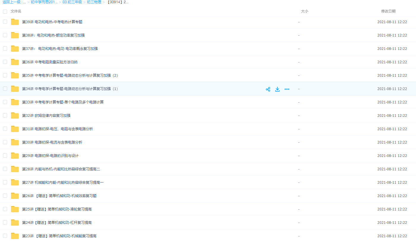 此课件来自学而思网校,【30914】2018初三新生物理年卡目标满分班(苏科版) 【70讲-杜春雨】,包含视频课程和讲义资料 。此课件的主要知识点包括:电功和电热-中考电热计算专题、电磁转换-中考电磁学专题之电磁铁原理、 电磁转换-中考电磁学专题之电动机与发电机原理、中考必考的电学计算题型、中考易错力学概念题等视频