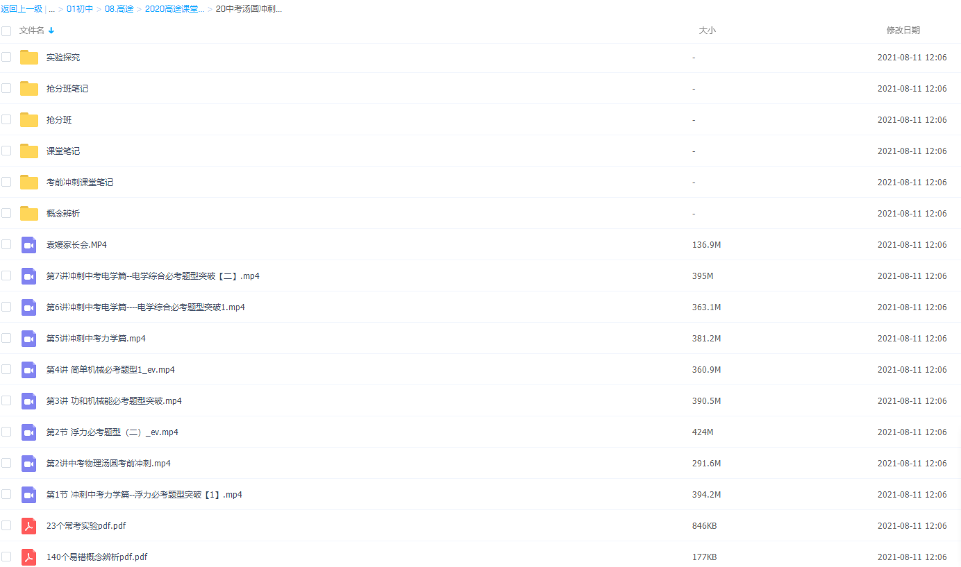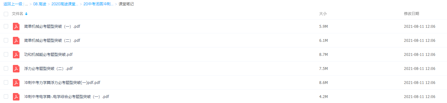 此课件来自高途课堂,高途2020中考物理汤圆冲刺【完结】 ,包含视频课程和讲义资料 。 此课件主要内容包括:中刺中考电学篇–电学综合必考题型突破、简单机械必考题型、功和机械能必考题型突破、中考物理汤圆考前冲刺、中考力学篇–浮力必考题型突破等视频