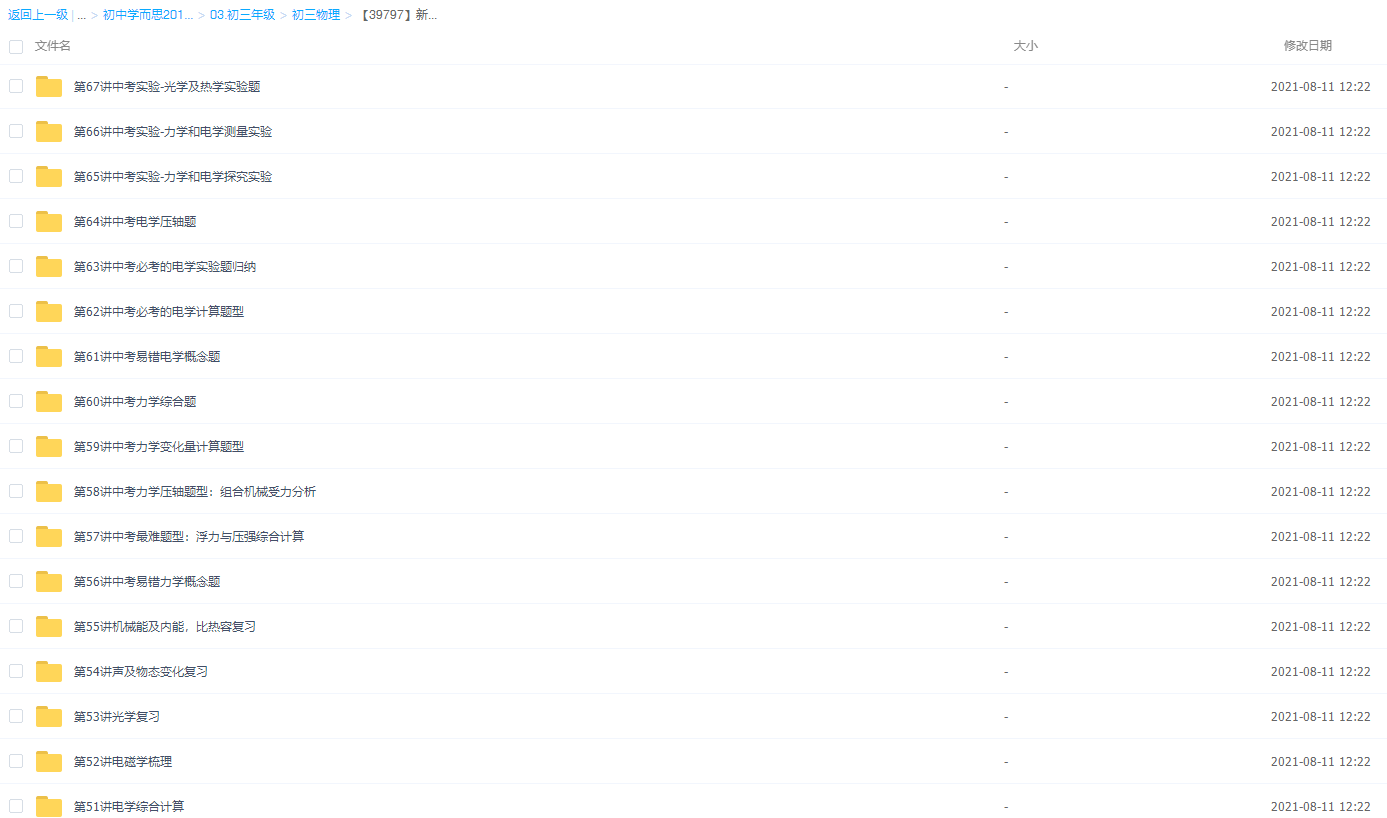 此课件来自学而思网校,【39797】新初三物理年卡尖子班(沪粤版) 【67讲杜春雨】,包含视频课程和讲义资料 。此课件的主要知识点包括:中考最难题型:浮力与压强综合计算、中考实验-力学和电学探究实验、中考电磁学专题之电动机与发电机原理、 电与磁-中考电磁学专题之电磁铁原理、机械能及内能,比热容复习等视频