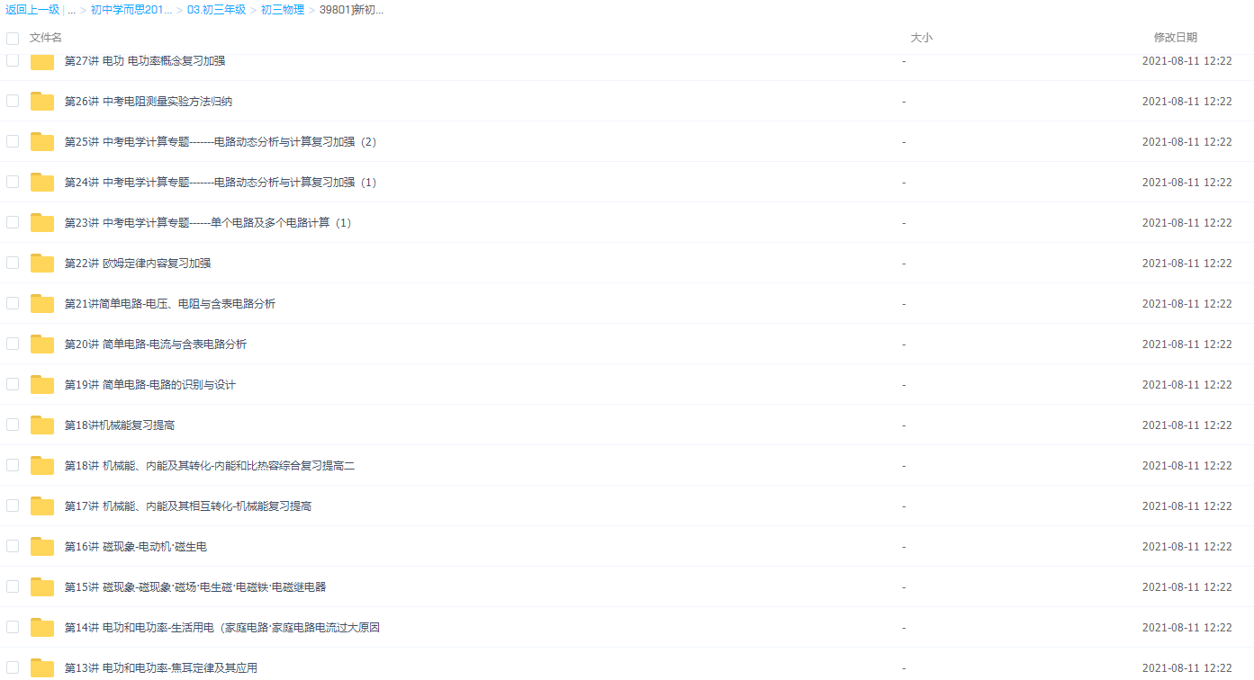 [39801]新初三物理年卡尖子班(全国北师版) 共62讲