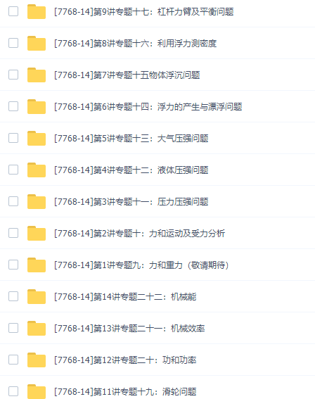 此课件来自学而思网校,跟老杜挑战物理竞赛题视频全套,包含视频课程和讲义资料。主讲杜春雨老师的课堂非常轻松幽默,善于提问,有画面感,让复杂的物理变得简单有趣。此课件主要知识点包括:密度计算-密度测量问题、密度计算空心问题、光的折射及凸透镜成像、光的反射及平面镜成像、温度及物态变化、声现象回声声速、追及问题平均速度、机械运动过桥问题相遇问题等等视频。