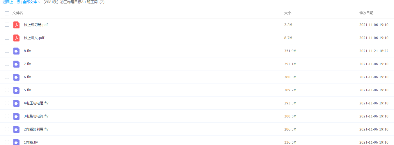 学而思2021秋初三物理王闯目标A+班7讲(更新中)