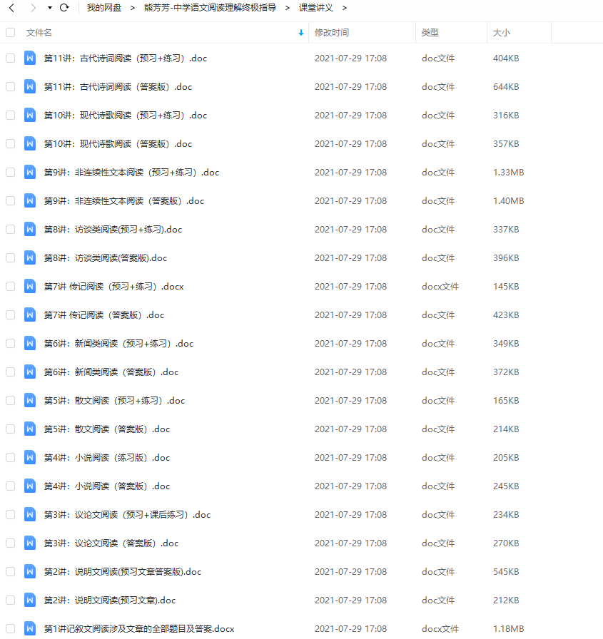 语文中阅读是很重要的,很多同学不知道怎么掌握正确的阅读方法,在考试中就不会很好地答题,本课件是熊芳芳老师的语文阅读专项练习,内容全面。