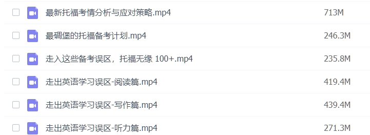 托福备考视频教程(20g) 声明:本站资源来自会员发布以及互联网公开收集,不代表本站立场,仅限学习交流使用,请遵循相关法律法规,请在下载后24小时内删除。 如有侵权争议、不妥之处请联系本站删除处理! 请用户仔细辨认内容的真实性,避免上当受骗!