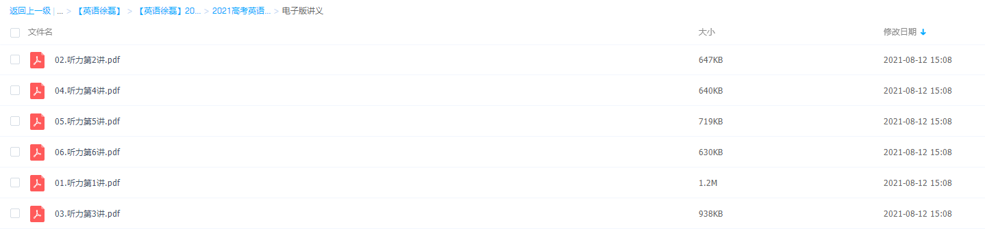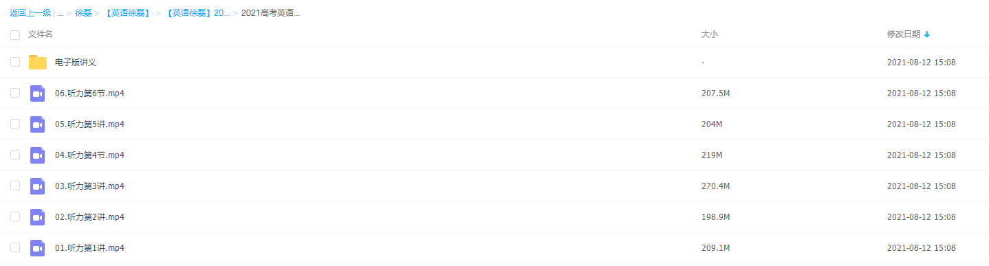 高三徐磊2021高考英语听力班的课程资源目录: