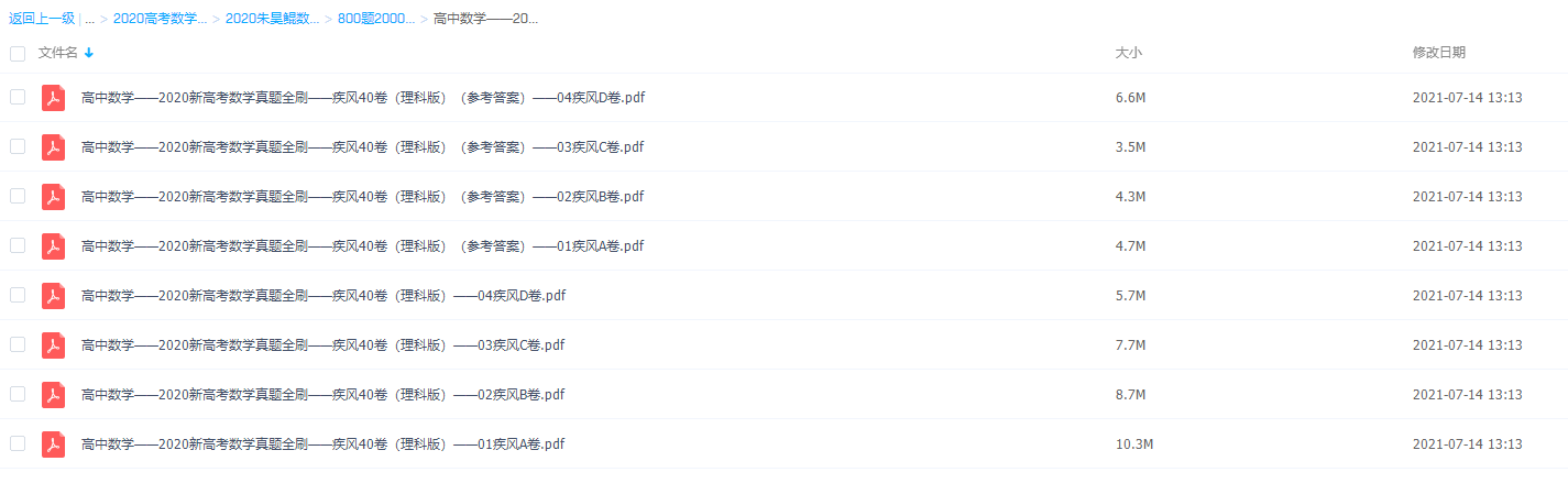 高中数学2020朱昊鲲新高考数学真题全刷疾风40卷理科版