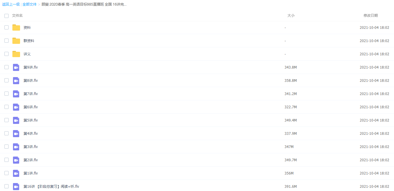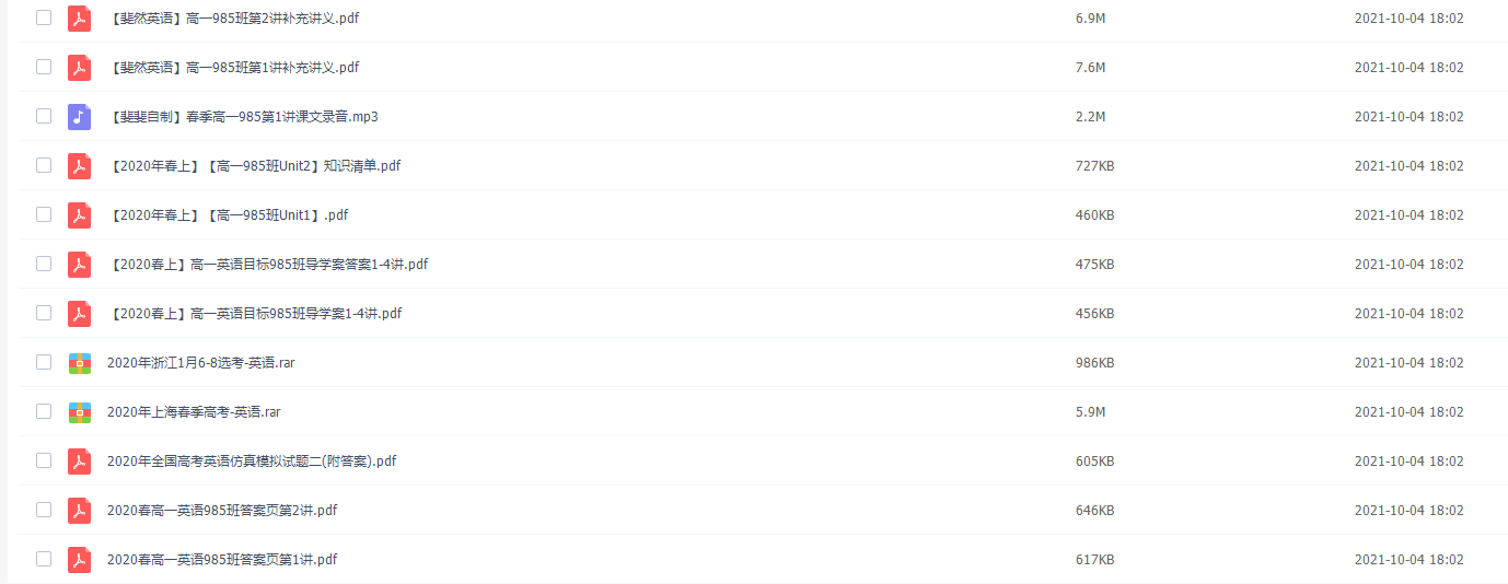 顾斐 2020春季 高一英语目标985直播班目录:├─【春季目标985班】高一英...
