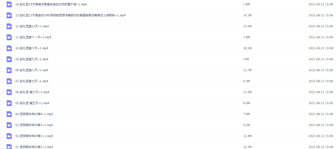 │├─13赵礼显13天易错点29利用函数思想求解数列的最值容易忽略其定义域限制~1.mp4