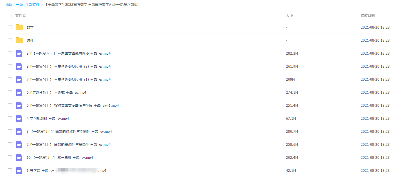 2022高考数学王晶A+班一轮复习暑假高中数学视频教程