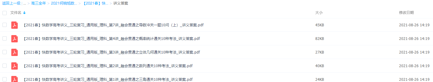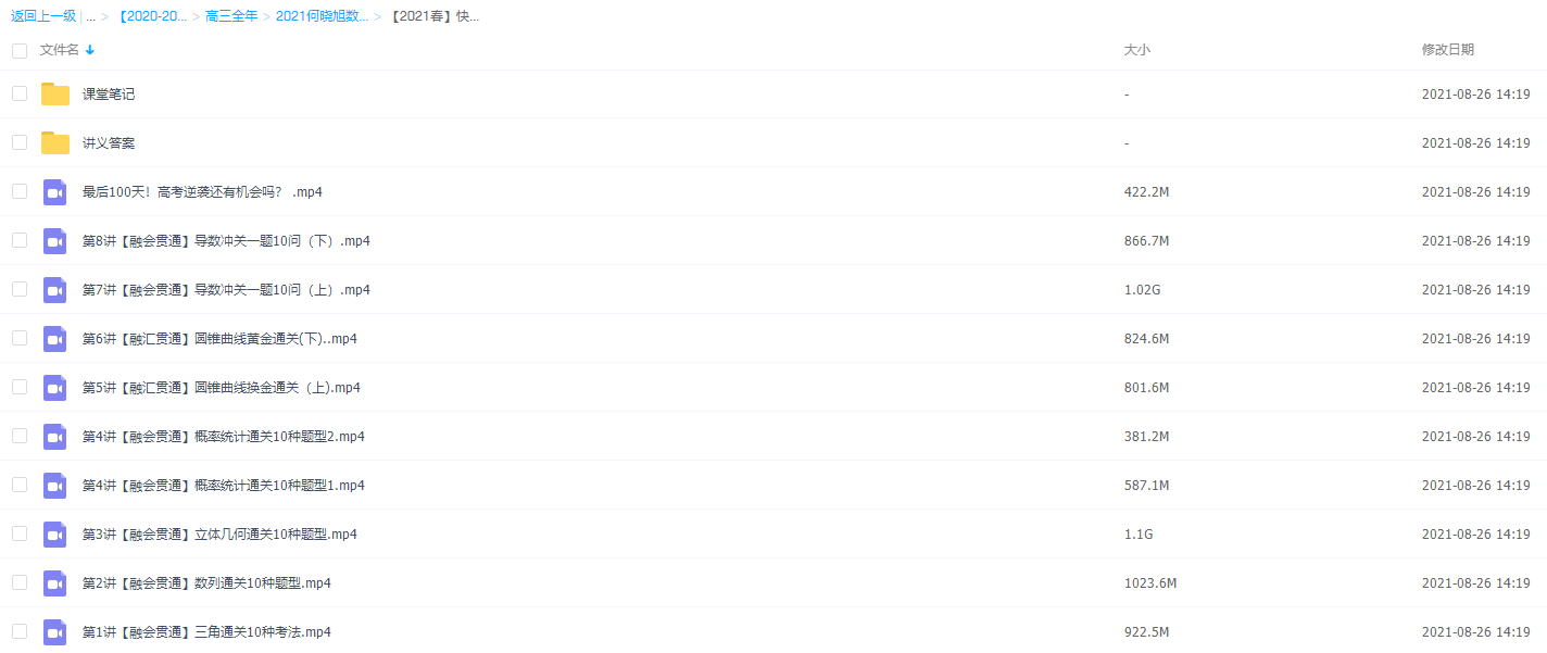此课件来自作业帮网校,高三数学何晓旭目标双一流,包含视频课程和讲义资料 。此课件主要知识点包括:三角通关10种考法、数列通关10种题型、立体几何通关10种题型、概率统计通关10种题型、圆锥曲线换金通关、导数冲关一题10问等视频。