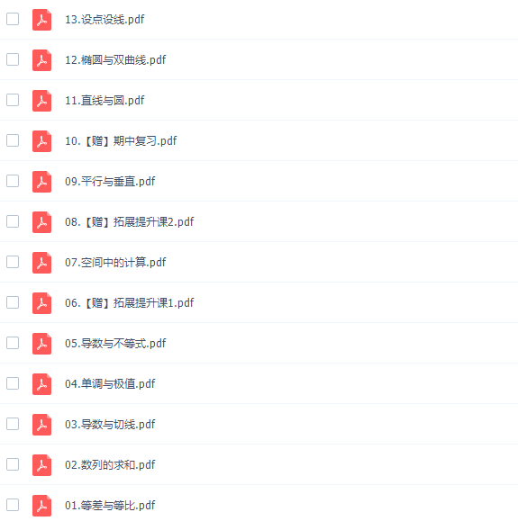 此课件来自作业帮网校,韩佳伟高三数学2021年秋季尖端班课程。此课件主要知识点包括:等差与等比、数列的求和、导数与切线、单调与极值、导数与不等式、空间中的计算、平行与垂直、直线与圆、椭圆与双曲线、设点设线、定点与定值问题、统计与统计案例。