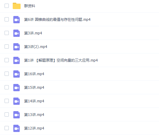 此课件来自学而思网校,武洪娇2021秋原理数学新高二数学目标S班完结。此课件主要知识点:空间向量的三大应用、立体几何中的动点问题、直线的方程与相关位置关系、圆的方程与相关位置关系、直线与圆综合问题、椭圆基本量与几何性质、双曲线基本量与几何性质、抛物线基本量与几何性质、参数的选择、四大几何量的表达、最值范围问题、定点定值问题、点差法与第三定义等等视频课程。