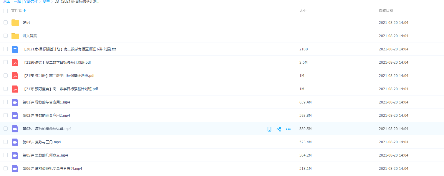 1│├─21高三寒假数学孙明杰 [文件夹大小:19.22 GB 子文件夹数: 4...
