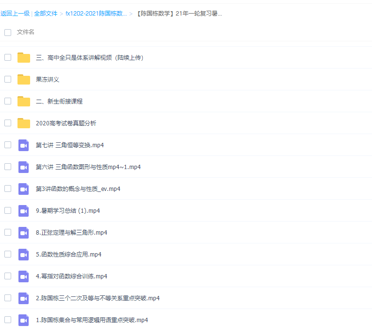 陈国栋数学2021届高考数学一轮暑秋直播讲解网课资源