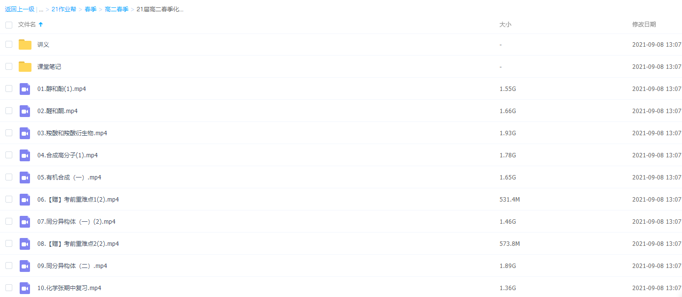 作业帮林森高二化学课程,本课程共35.6G,VIP会员可通过百度网盘转存下载或者...