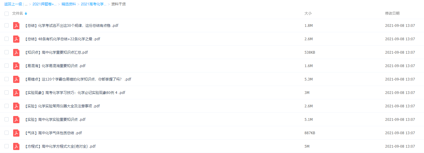 高中化学一直被称作是第二门外语,意思就是说化学方程式和英语单词很像,靠死记硬背是难以记牢的,应学会巧记。此课件来自2021高考化学精选资料包,主要内容包括:【总结】48条有机化学总结+22条化学之最、[知识点】高中化学重要知识点汇总、【易混淆】化学易混淆重要知识点、【实验现象】高考化学学习技巧:化学必记实验现象80例、【实验】高中化学实验重要知识点、【实验】化学实验常用仪器大全及注意事项、【气体】高中化学气体性质总结、【方程式】高中化学方程式大全(绝对全)等PDF资料。