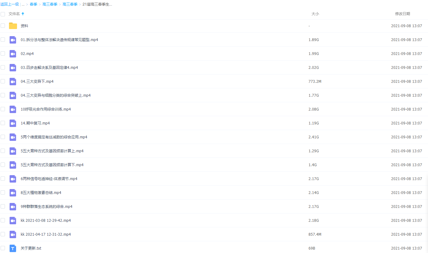 此课件来自作业帮网校,2021作业帮高三春季生物段瑞莹尖端视频课程,包括课程视频回放以及资料讲义。主讲段瑞莹老师创立“逻辑生物”教学体系,倡导通过培养“逻辑思维”学习生物,实现快速提分,课程中渗透培养学生“构建知识体系”的生物学习能力,教授学生合理“分类刷题”的做题练习方法,实现生物稳步提升,高考满分。此课件知识点主要包括:拆分法与整体法解决遗传规律常见题型、四步走解决系及基因定律、三大变异与细胞分类的综合突破、五大育种方式及基因预率计算等视频。