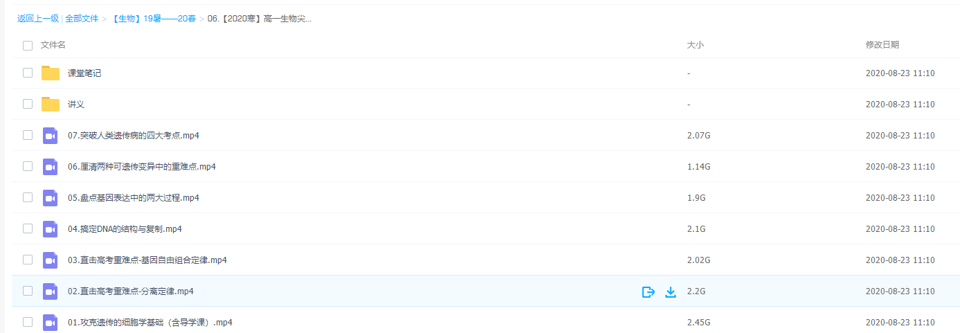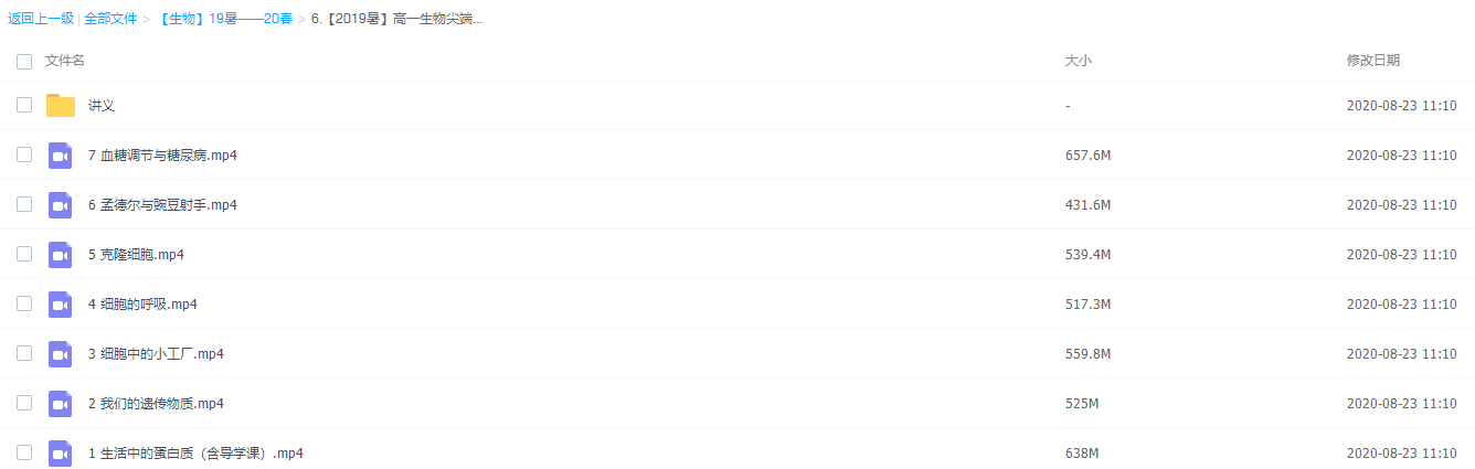 此课件来自作业帮网校,高一生物尖端班19-20学年直播课四季完整视频,包含视频课程和讲义资料 。主讲段瑞莹老师在课程中渗透培养学生“构建知识体系”的生物学习能力,教授学生合理“分类刷题”的做题练习方法,实现生物稳步提升。此课件主要包括:高一生物尖端班(19暑假班)、高一生物尖端班(19秋季班)、高一生物尖端班(20寒假班)、高一生物尖端班(20春季班)。