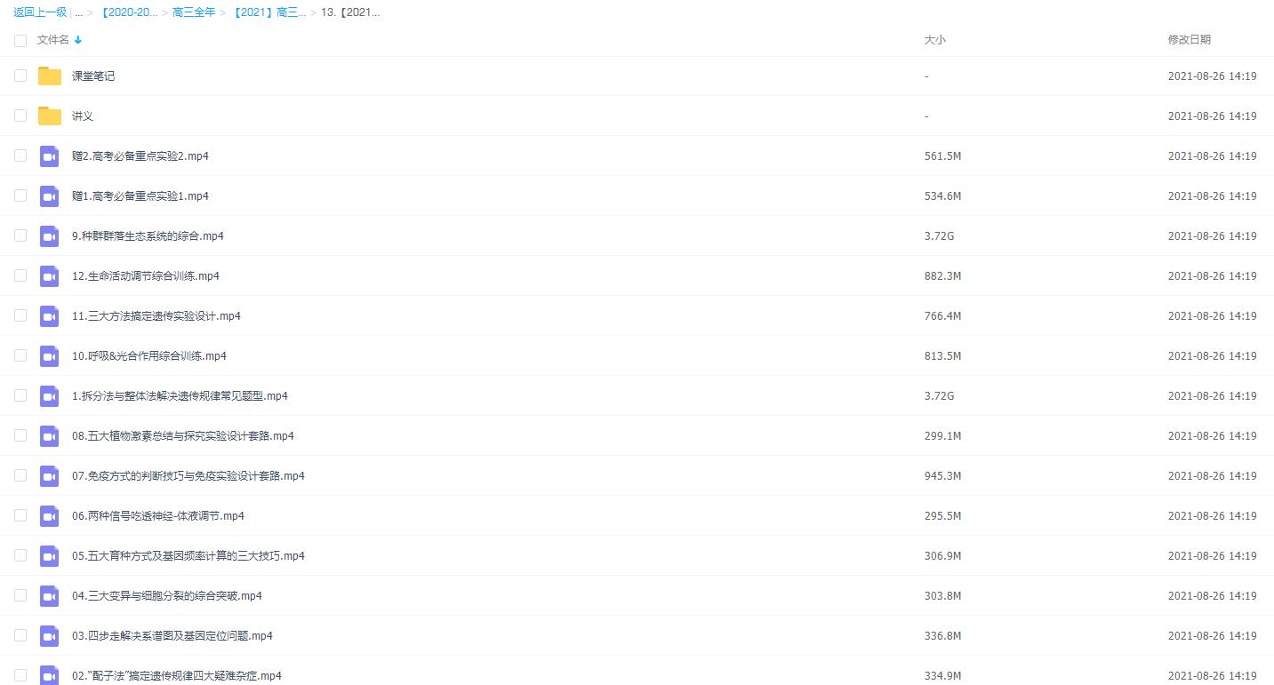 此课件来自作业帮网校,2021春季高三生物杨雪高考双一流班,包含视频课程和讲义资料 。此课件主要知识点包括:种群群落生态系统的综合、生命活动调节综合训练、三大方法搞定遗传实验设计、五大植物激素总结与探究实验设计套路、免疫方式的判断技巧与免疫实验设计套路、五大育种方式及基因频率计算的三大技巧等视频。