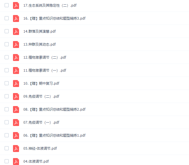 此课件来自作业帮网校,邓康尧2021高二生物秋季班更新17讲。主讲邓康尧老师讲课的时候让生物特别能够理解,不会感到无聊,大招频出減少做题时间。此课件主要知识点包括:人体的内环境及稳态、神经调节、重点知识总结和题型精炼、免疫调节、种群及其动态、群落及其演替、生态系统及其稳定性等视频。