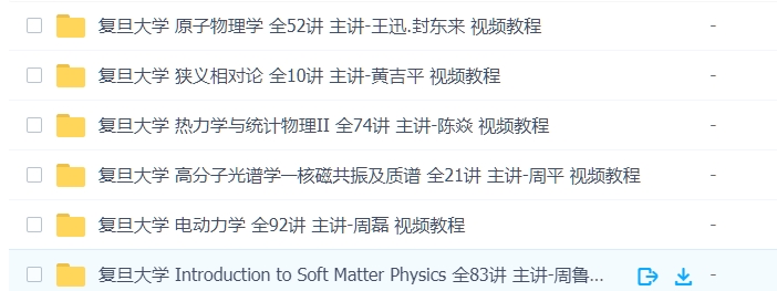 复旦大学 基础科学课 6套物理学视频 声明:本站资源来自会员发布以及互联网公开收集,不代表本站立场,仅限学习交流使用,请遵循相关法律法规,请在下载后24小时内删除。 如有侵权争议、不妥之处请联系本站删除处理! 请用户仔细辨认内容的真实性,避免上当受骗!