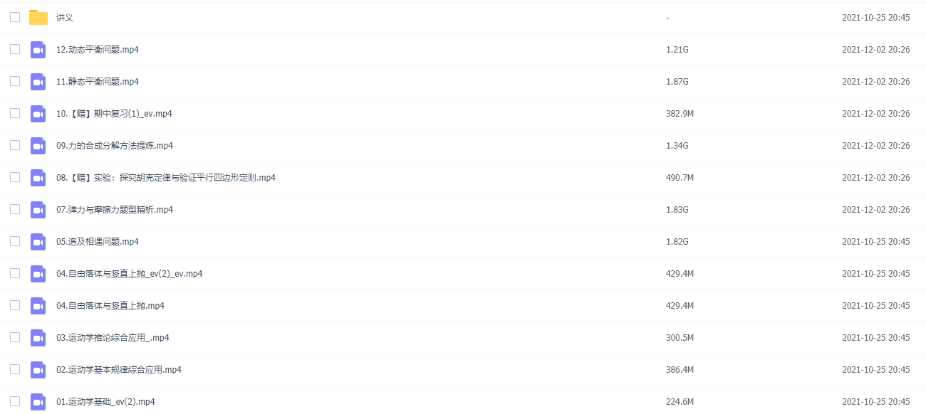 何连伟2021秋季高一物理秋季尖端班 秋季班更新12讲