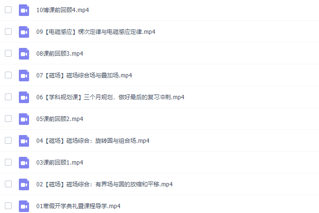 此课件来自猿辅导网校,李搏高三物理2022年寒假A+班视频课程。此课件主要知识点包括:磁场综合:有界场与圆的放缩和平移、磁场综合:旋转源于组合场、磁场综合:组合场与叠加场、楞次定律与电磁感应定律、单棒模型与线框模型、双杆模型与棒容模型、交变电流及远距离输电等等视频课程。