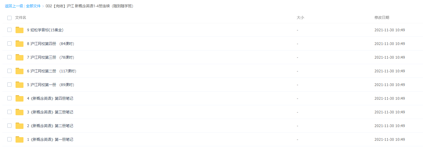 《新概念英语》大家都不陌生,学英语最好的教材就这本教材。但只是靠教材学习然后想通过各种英语考试,还是有一定的难度的,所以选择适合自己的新概念网课很有必要。此课件来自沪江-新概念英语1-4完整版,包括新概念1-4全册以及全方位的字母音标学习,迅速提升你的英语能力!