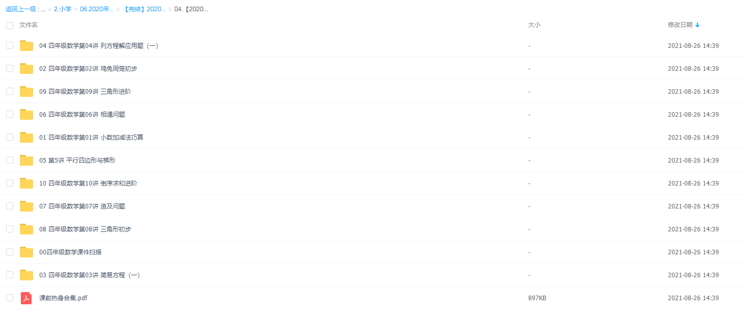 此课件来自于学而思网校,2020年王睿小学三年级升四年级数学暑期培训班勤思在线课程,包括课程视频回放以及课堂资料讲义。主讲王睿老师注重学生数学思想与学习兴趣的培养,并且拥有多年一线教育经验,熟悉小学数学重难点,授课风格轻松幽默。此课件的主要知识点包括小数加减法巧算、鸡兔同笼初步、简易方程、列方程解应用题、三角形进阶等。