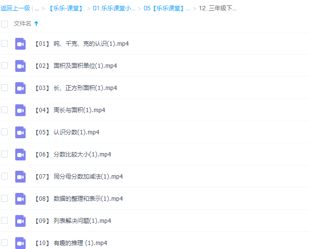 此课件来自乐乐课堂,小学数学三年级下册(II)视频课程。此课件主要知识点包括:吨、千克、克的认识、面积及面积单位、长、正方形面积、周长与面积、认识分数、分数比较大小、同分母分数加减法、数据的整理和表示、列表解决问题、有趣的推理。