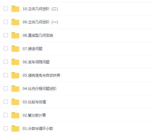 此课件来自小学蘑菇培优五年级数学2021年暑期卓越班课程,此课件主要知识点包括:分数与循环小数 、繁分数计算 、比较与估值、比例行程问题进阶 、猎狗追兔与自动扶梯、发车间隔问题 、接送问题 、直线型几何变换 、立体几何进阶。