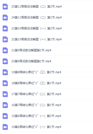 此课件来自小学奥数举一反三小学六年级奥数课程,此课件主要知识点包括:定义新运算、渐变运算、简便运算、转化单位“1”、假设法解题、倒推法解题、比的应用、工程问题、浓度应用题、面积计算、工程问题、比较数的大小、抽屉原理等等视频课程。