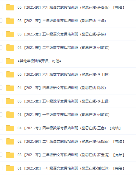 小学勤思在线寒假班,多个名师合集,可以有选择的学习,小学课程也是十分重要的,从小给孩子养成爱学习的好习惯,在以后长大的学习中能够得心应手。部分内容:应用文是人们在生活、学习、工作中为处理实际事务,经常使用的具有交际等作用的惯用格式文体。本节课,学生会学习生活中最常用的应用文——通知、留言条和告示,并了解这三种应用文的使用场景,掌握写作格式和方法,达到学以致用的效果。一、基础知识1.“是”字句谁是什么。例:橘子是一种水果。谁是什么样的什么。例:谦虚是一种优秀的美德。2.“有”字句哪里有什么。例:天空中有一群飞鸟。哪里有什么怎么样地做什么。例:河面上有几条小船缓慢地开过。小学生数学法则知识归类:(一)笔算两位数加法,要记三条:1、相同数位对齐;2、从个位加起;3、个位满10向十位进1。(二)笔算两位数减法,要记三条:1、相同数位对齐;2、从个位减起;3、个位不够减从十位退1,在个位加10再减。自古以来,多数人把数学看成是一种知识体系,是经过严密的逻辑推理而形成的系统化的理论知识总和,它既反映了人们对“现实世界的空间形式和数量关系(恩格斯)”的认识(恩格斯),又反映了人们对“可能的量的关系和形式”的认识。语文和数学都是比较重要的学科,小学没有太多学科,所以要专心地打好基础,多练习,本课件内容全面,孩子可以根据自身需求来学习!