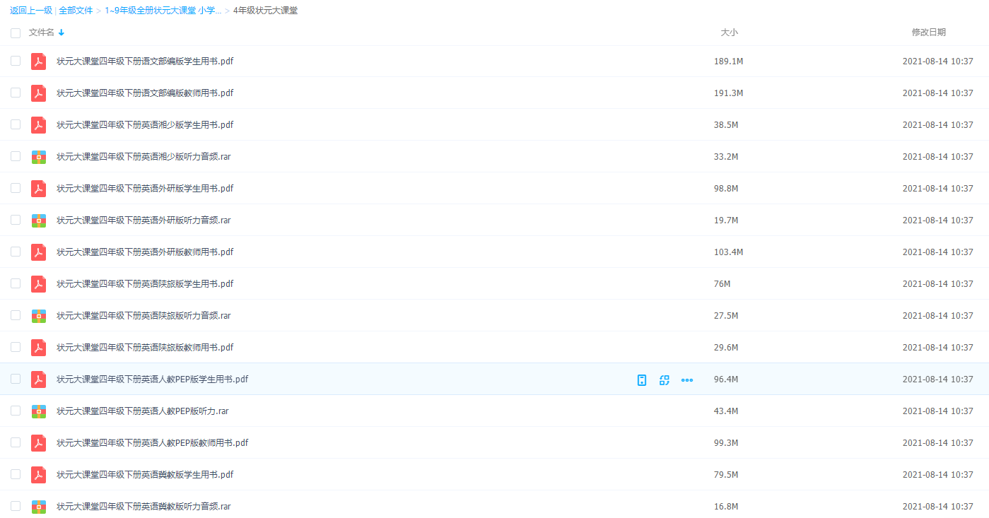 4年级状元大课堂全科电子课本听力音频教师学生通用辅导资料,现在已经开始感受到学习的难度了,辅导资料很重要啊~