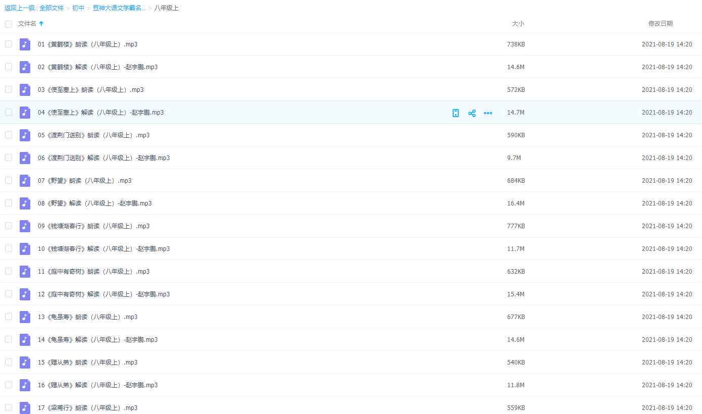 本课件是豆神大语文八年级上册学习课程,内容全面,里面包含了详细的知识点讲解音频,可以让同学们在日常生活中好好学习语文!