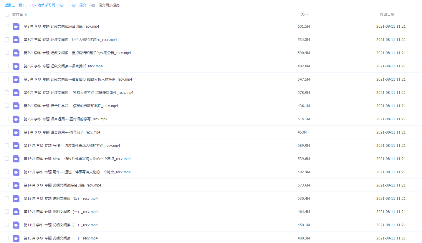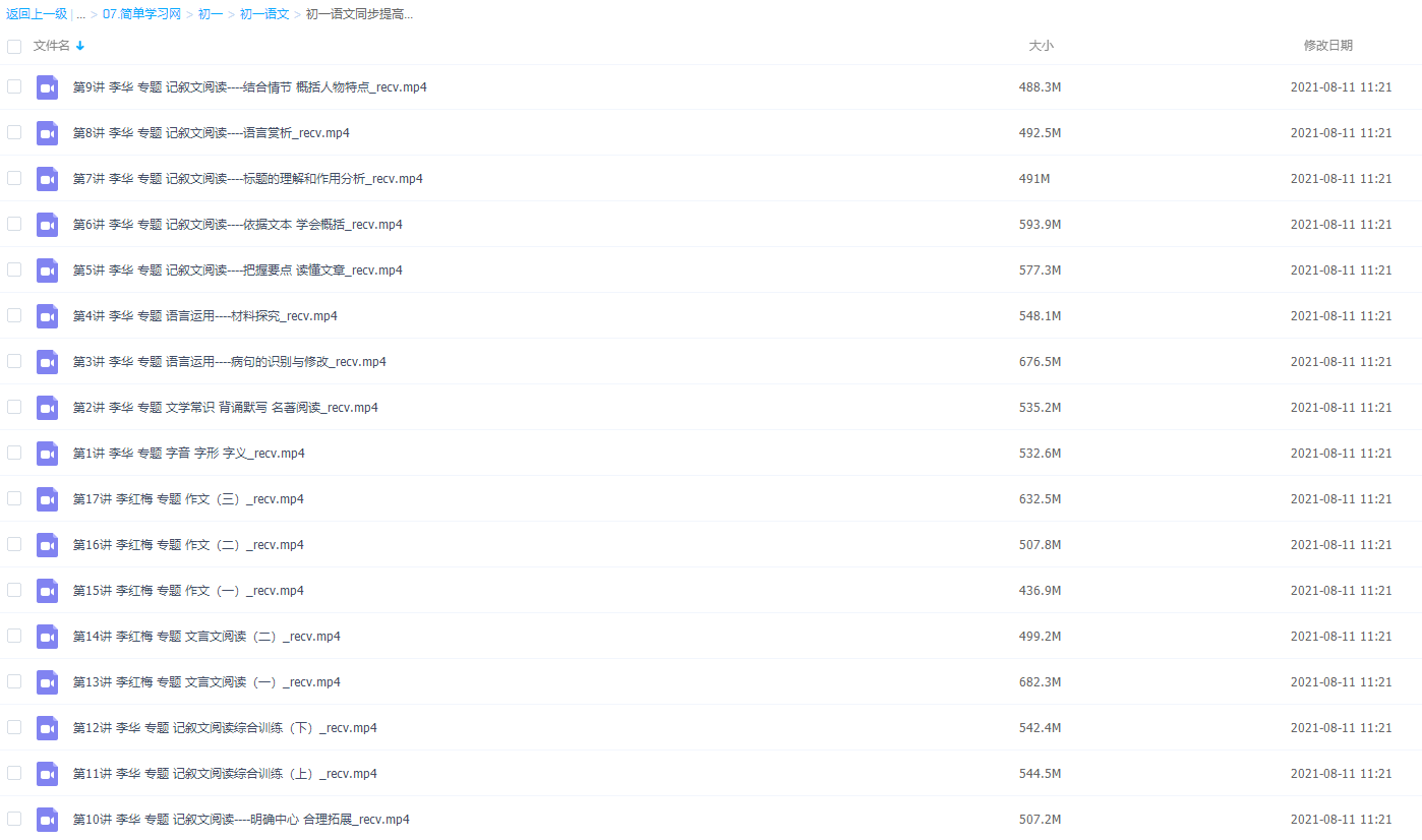 此课件来自简单学习网,简单学习网李华初一语文同步提高课程 。 此课件主要内容包括:记叙文阅读综合训练、语言运用、说明文阅读综合训练等视频。主讲李华老师因材施教,针对性辅导,让学习效率翻倍,赢得高分。