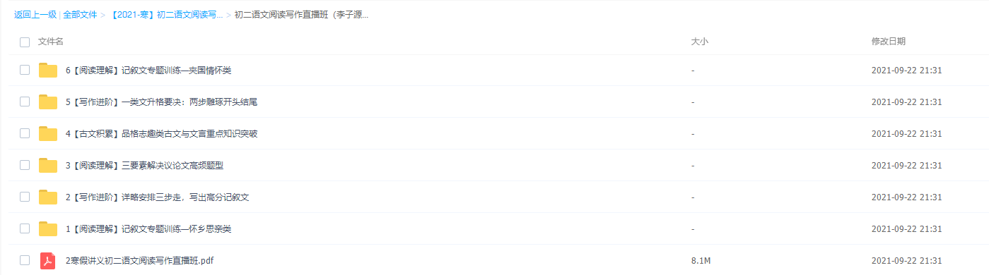 此课件来自学而思网校,李子源初二语文2021寒假阅读写作直播班,包含视频和讲义。李子源老师讲解风趣幽默,能够带动孩子的积极性,兼具哲学思辨和人文思悟。主讲内容有记叙文专题训练—怀乡思亲类、详略安排三步走,写出高分记叙文、三要素解决议论文高频题型、品格志趣类古文与文言重点知识突破、议论文升格要决:两步雕琢开头结尾、记叙文专题训练—家国情怀类等。
