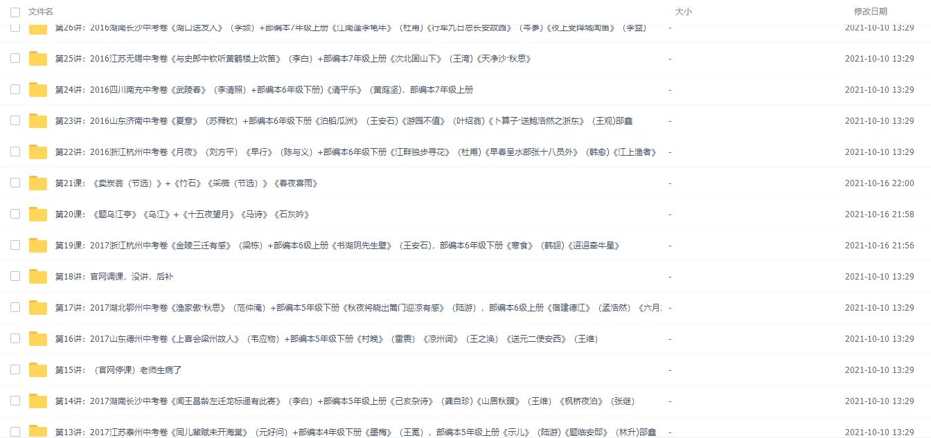 此课件来自诸葛大语文,驴火歌王中小学语文考前必备中小学古诗词鉴赏技巧50讲。此课件解决的就是同学们常遇到的古诗词读不懂,不会赏析,鉴赏题丢分的问题。邵老师在这门课里讲了四十多个常用、常考的鉴赏技巧,还通过生活中的案例、歌词、历年考试的真题举例分析,帮助你更好地理解、掌握、运用这些技巧。