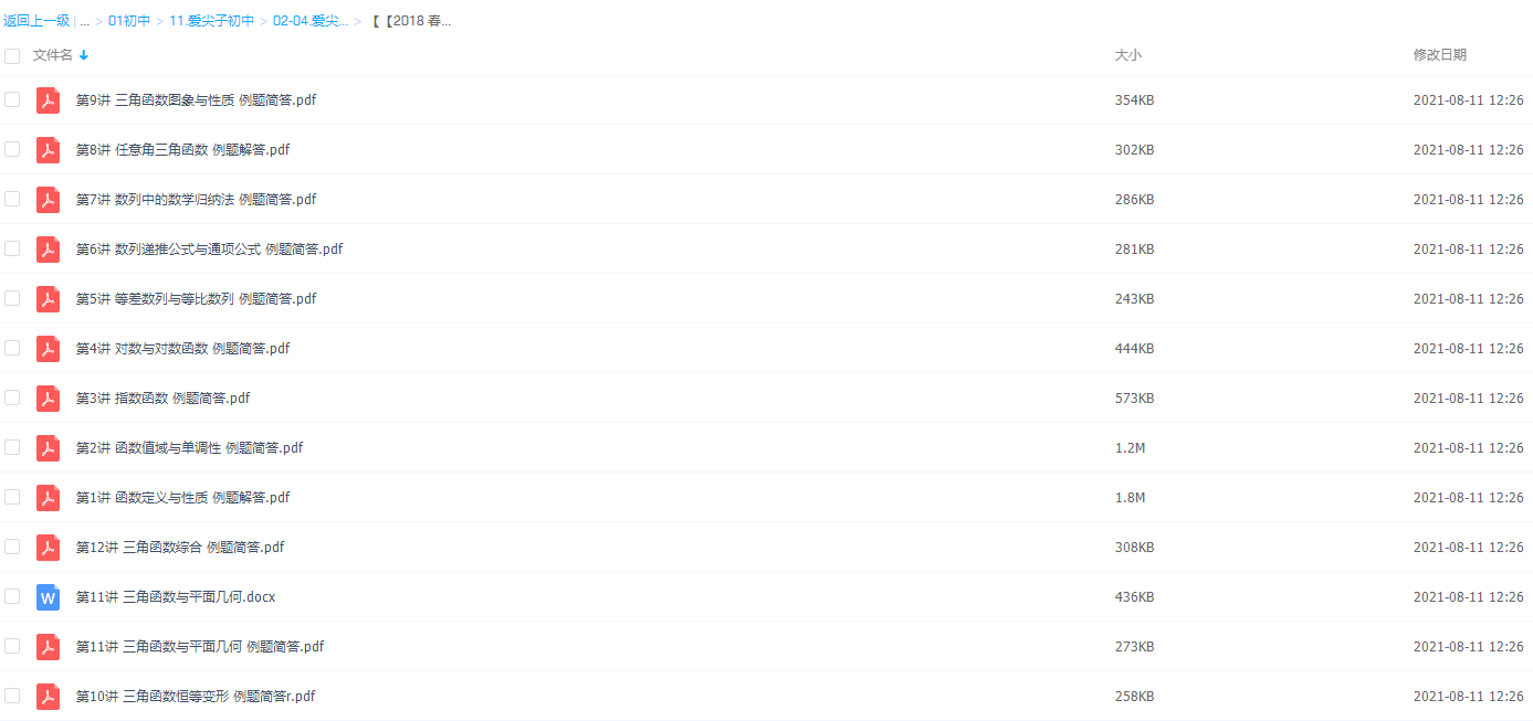 此课件来自爱尖子网校,初二数学竞赛专属课(2018春季),包括课程视频回放以及资料讲义。课程主要包括:初二春季班期末测试、三角函数恒等变形、三角函数与平面几何、函数值域与单调性、对数与对数函数等视频课程。